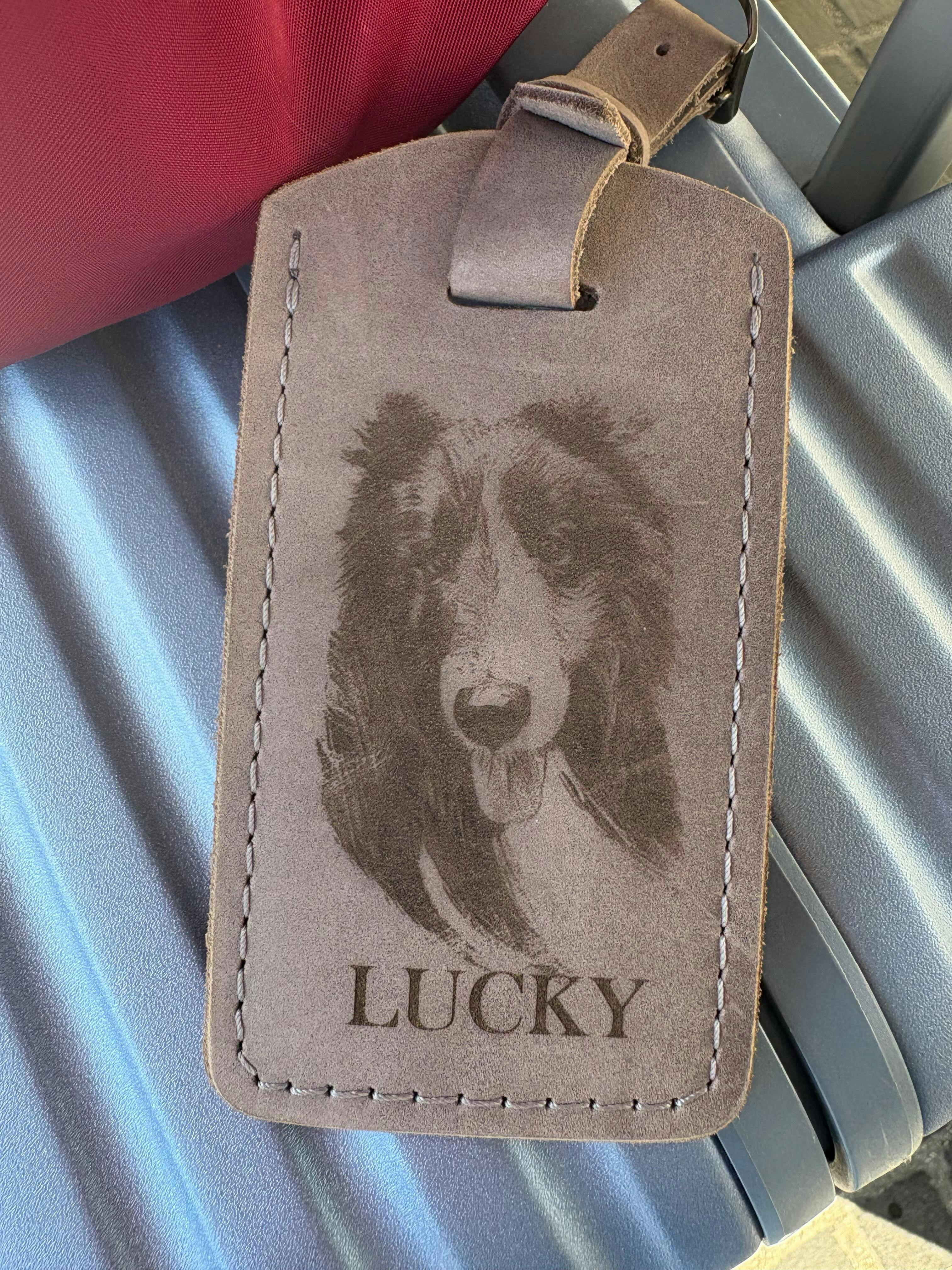 Avouons-le, il est difficile de laisser nos animaux de compagnie derrière nous, mais il arrive que l'on doive voyager sans eux. Désormais, vous pouvez emmener votre adorable compagnon à quatre pattes avec vous, même s'il n'est pas à vos côtés. Cette élégante étiquette à bagages est non seulement confectionnée en cuir véritable légèrement vieilli qui se patine avec le temps, mais elle est aussi unique, car elle est gravée sur mesure du portrait de votre animal. Elle est fournie avec une carte d'identification, et le rabat arrière permet de garder vos coordonnées confidentielles. Durable, élégante et tellement chic ! Elle sublimera n'importe quel bagage. Disponible en plusieurs couleurs.