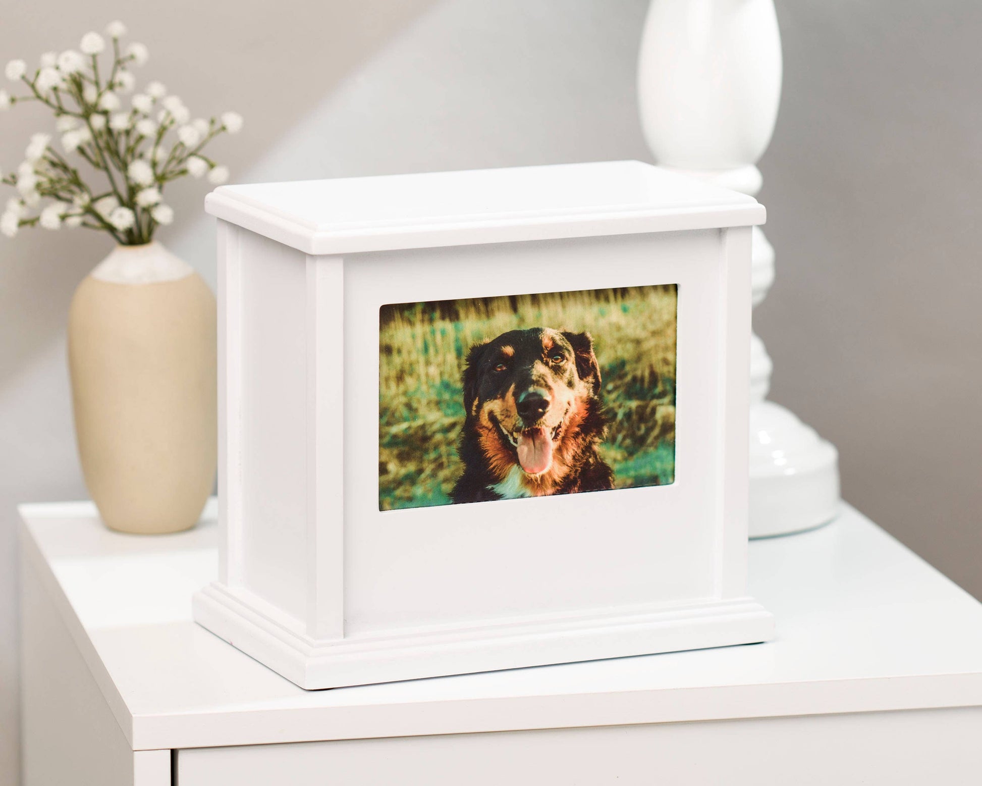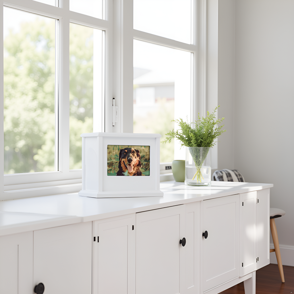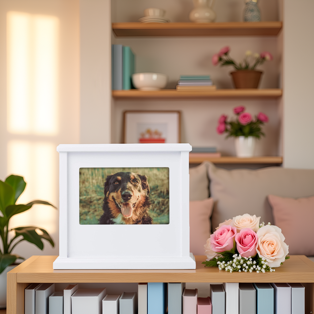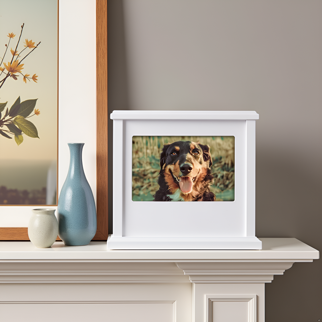 Boîte à souvenirs photo pour animaux de compagnie, urne commémorative