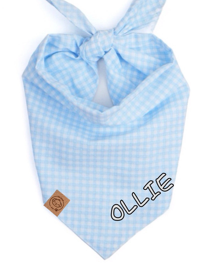 Fun Easter bandana in baby blue gingham cotton!