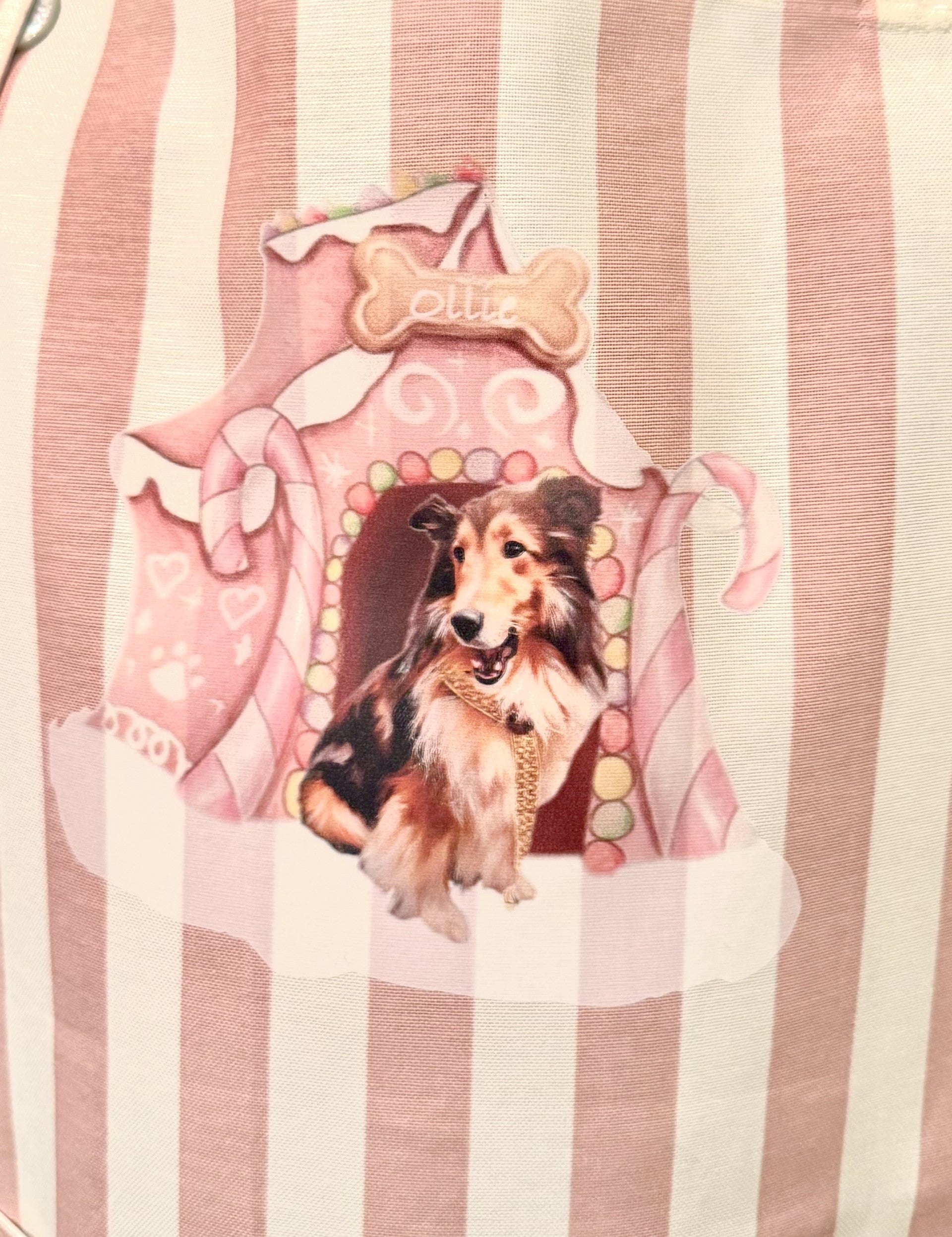 This adorable apron gets even cuter with the addition of your canine companion portrait. Have a chuckle about your dog guarding its gingerbread dog house, all while keeping you perfectly clean! Now holiday baking is elevated to another level!
